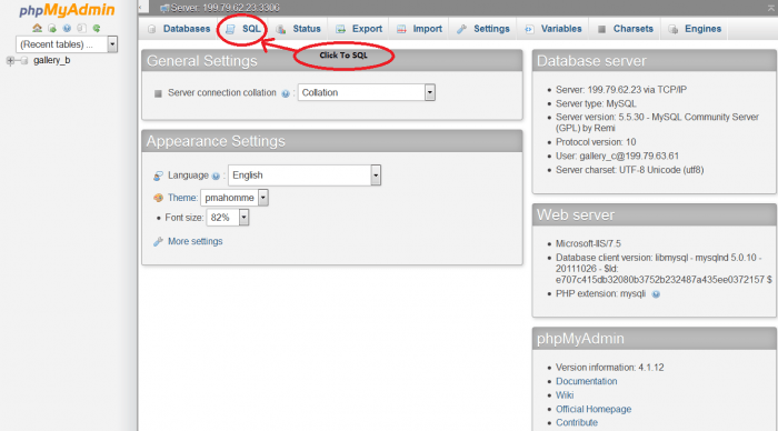 WebsitePanel – Go to Database >> MySQL 5.x section and click on “Browse Database” option to the right of the Database name in the list you want to restore. cPanel – Click on PHPMyAdmin option under the “Database” section on Homepage of cPanel Control Panel. Once PHPMyAdmin is open, follow below steps. i. In PhpMyAdmin, click on the name of your database in Left Sidebar which will take you to your database page. Now there are 2 ways you can restore your database. ii. Either, click on the “SQL” option in the top horizontal menu to open a text area where you can directly paste the contents of your .sql file (.sql file can be opened in any text editor like Notepad) and then click on “Go” button to restore database.